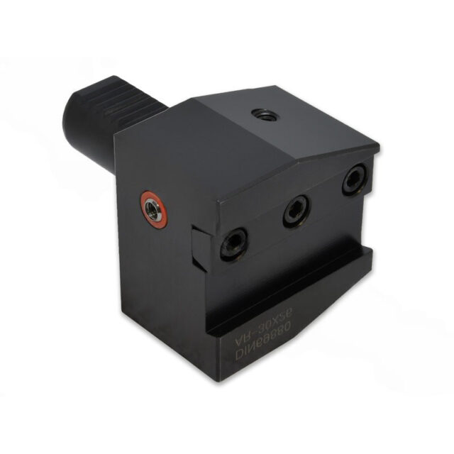 Держатель для отрезного лезвия VDI50, выполненный в правом исполнении. Основная опорная поверхность находится ниже оси центров (оси вращения шпинделя). Предназначен для радиального и продольного наружного точения.