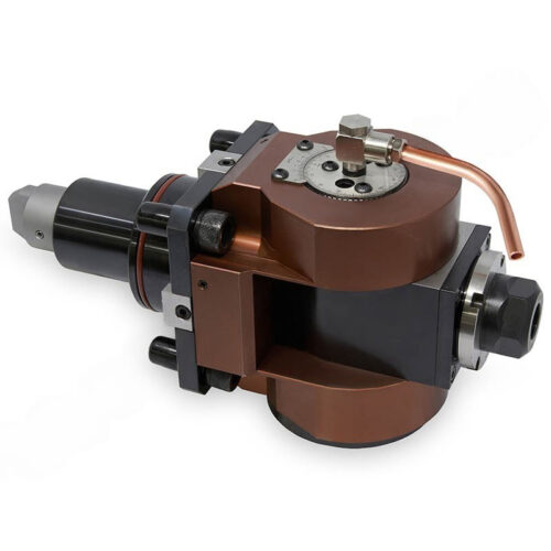 Универсальный фрезерный блок с возможностью изменения угла наклона шпинделя. Предназначен для цанг ER20 по стандарту DIN 6499. Диапазон зажима составляет от 1 до 13 мм. Оснащён внешней системой охлаждения.